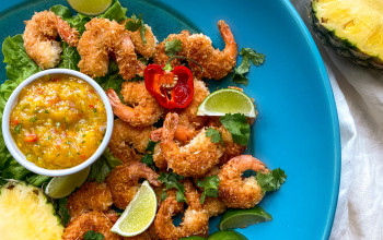 Crispy Baked Coconut Shrimp Served with Pineapple Sauce