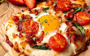 Morning Pizza topped with Bacon, Eggs, and Spinach