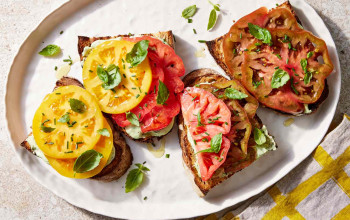 Ricotta Spread on Toast with Bacon and Tomatoes