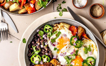 Rainbow-Style Potato Pancakes with Eggs and Harissa