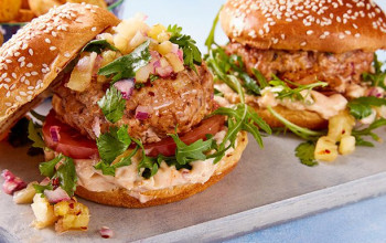 Pork Burgers with Grilled Pineapple Salsa