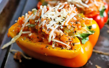 Bold Mediterranean Chicken Accompanied by Sausage-Stuffed Peppers