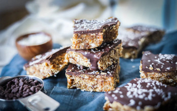 Crispy Treats with Coconut, Caramel, and Chocolate