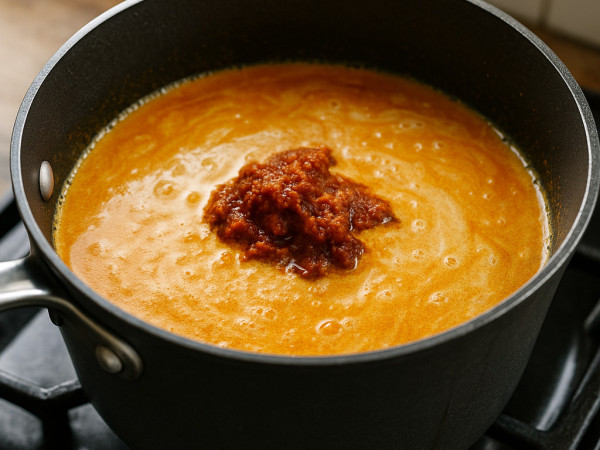 Warm the curry powder and curry paste in a saucepan over medium-low heat. Give it a good stir and cook until you can really smell those spices, about 2 minutes. Then, pour in the coconut milk and stir everything together. Add the fish sauce, brown sugar, and a cup of chicken stock, mixing well to combine.