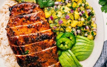 Coconut-Lime Chicken Accompanied by Grilled Pineapple