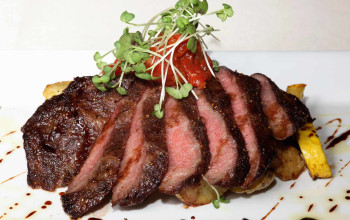 Flat Iron Steak with a Spicy Three Pepper Mix