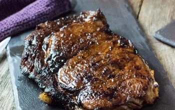 Zesty Sauce on Bacon-Wrapped Pork Chops