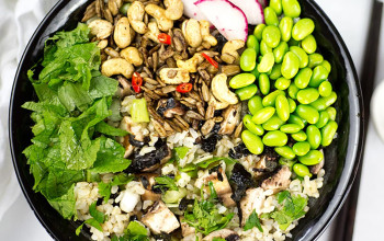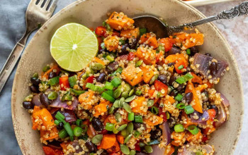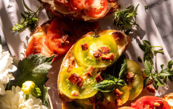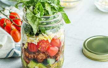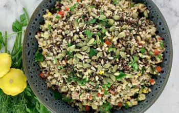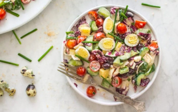 Sorghum and Quail Egg Salad with Avocado, Kumato®, and Buffalo Mozzarella