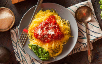 Spaghetti Squash Topped with Warm Winter Red Sauce