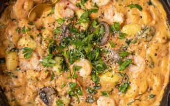 Gnocchi and Creamy Saffron Shrimp with Deliciously Caramelized Onions