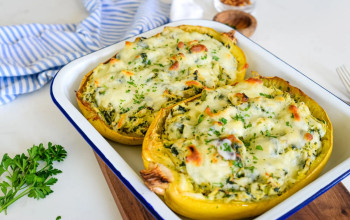 Cheesy Spinach and Roasted Garlic Spaghetti Squash