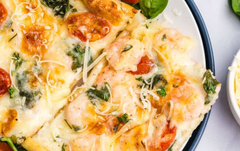 Naan Pizza Topped with Shrimp Alfredo