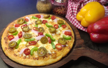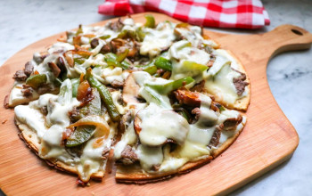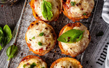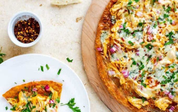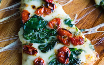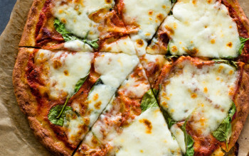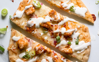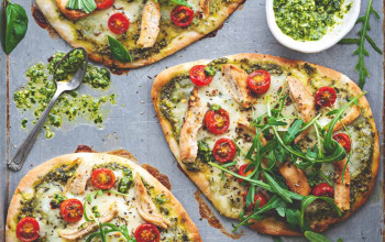 Naan Pizza Featuring Basil Pesto and Three Cheeses