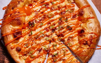 Caramelized Onion and Fontina Pizza with Pumpkin Hummus