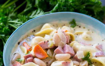 Rich Creamy Soup Featuring Ham, Beans, and Tortellini