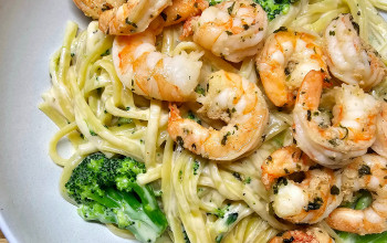 Lean Alfredo Sauce Featuring Shrimp and Broccoli