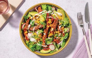 Avocado Cilantro Dressing over a Tex-Mex Beef Bowl