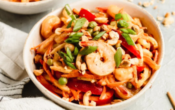Peanut Sauce Rice Noodles with Spicy Shrimp