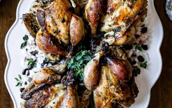 Flavorful Pan-Roasted Chicken Accompanied by Vegetables and Herbs