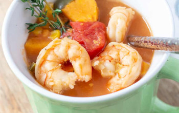 Hearty Sweet Potato Soup with Spicy Shrimp