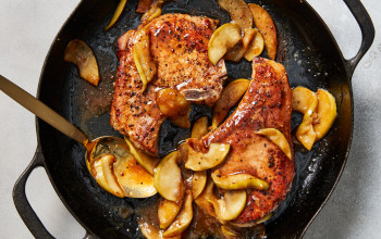 Roasted Pork Chops Served with Apples