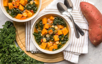 Kale Pesto and Sweet Potato Soup (Vegan-Friendly)