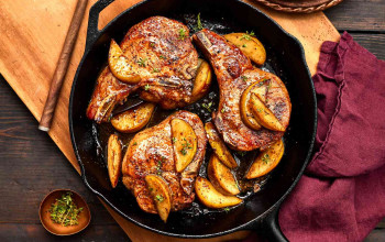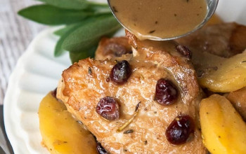 Pork Chops Accompanied by Pear Sauce