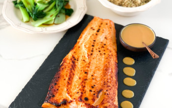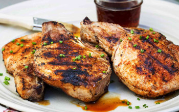 Zesty Sauce on Bacon-Wrapped Pork Chops