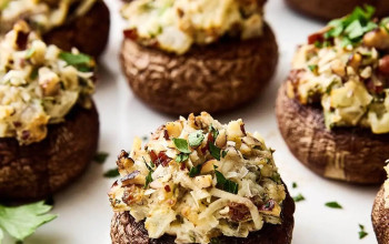 Fried Mushrooms Topped with Feta Cheese Dressing