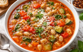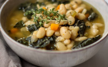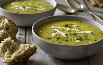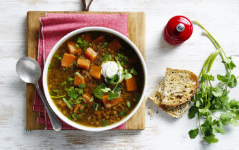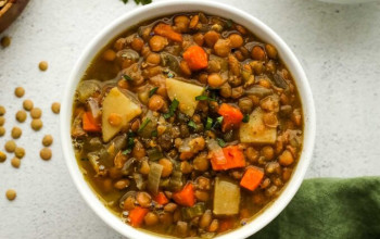Hearty Lentil Soup with Goat Cheese and Arugula