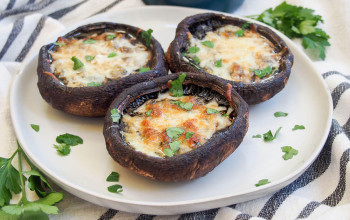 Roasted Portobello Mushrooms Served with Sautéed Produce