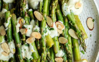 Oven-Roasted Asparagus Topped with Lemon and Goat Cheese