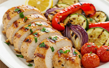 Flavorful Pan-Roasted Chicken Accompanied by Vegetables and Herbs