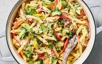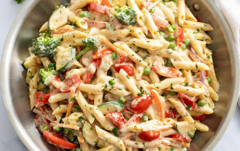 Pasta Primavera with Chicken and Sausage in a Creamy Sauce