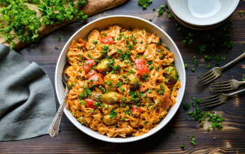 Wagon Wheel Pasta with Apple Sausage