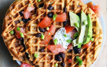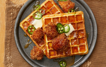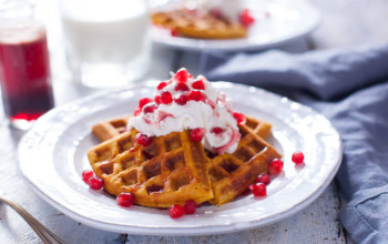 Waffles Made with Sweet Potatoes and Cranberry Maple Syrup