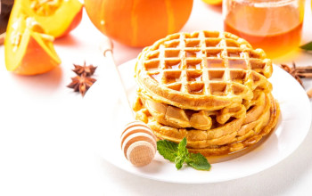 Waffles Made with Pumpkin and Spiced Maple Syrup
