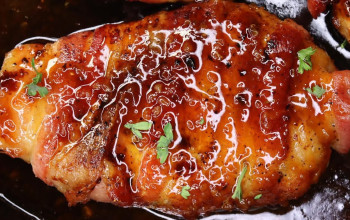 Zesty Sauce on Bacon-Wrapped Pork Chops