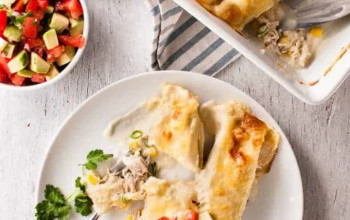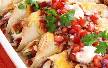 Spicy Chicken Enchiladas Drizzled with Tomatillo Salsa