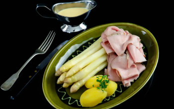 Bundled Asparagus and Ham with a Rich Hollandaise Sauce