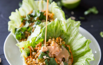 Cauliflower Rice Lettuce Wraps Drizzled with Spicy Peanut Sauce